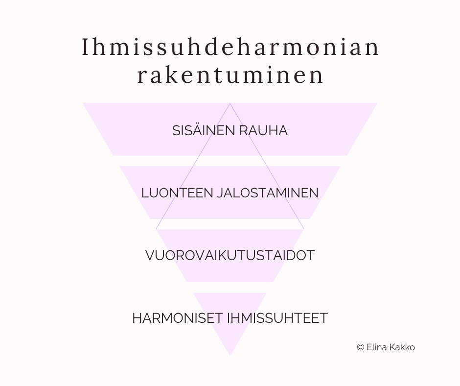 Ja kun ihminen löytää rauhan itsessään, hänestä tulee rauhanrakentaja myös suhteissaan.